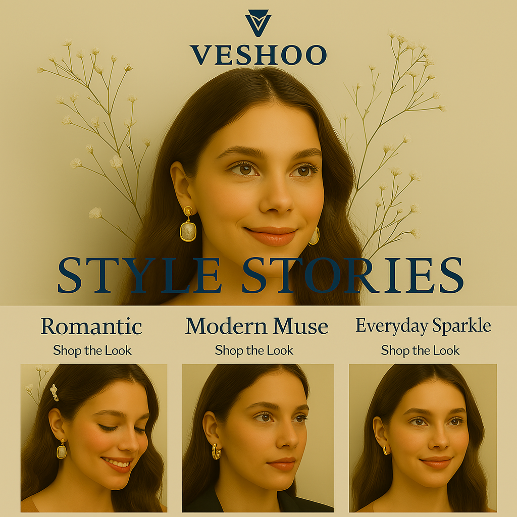 💫 “Where every shimmer is a whisper of you.”👑 “Adorned in VESHOO — feel the luxe in your look.”🌷 “Crafted for moments that linger. Styled for hearts that wander.”🕊️ “Grace, redefined — one earring at a time.”🌟 “Simplicity with soul. Elegance with edge.”🎀 “Your story deserves sparkle — tell it with VESHOO.”🌼 “From first glance to forever — earrings that stay with you.”