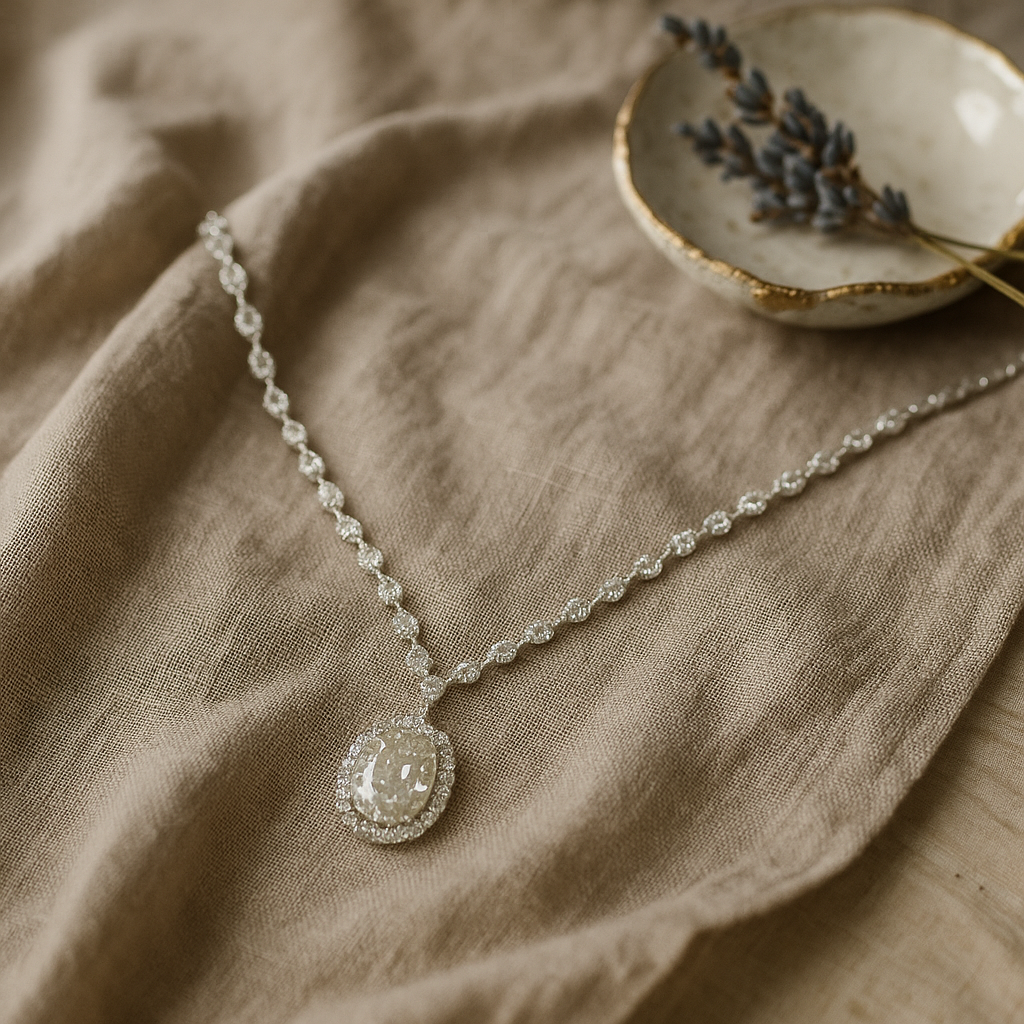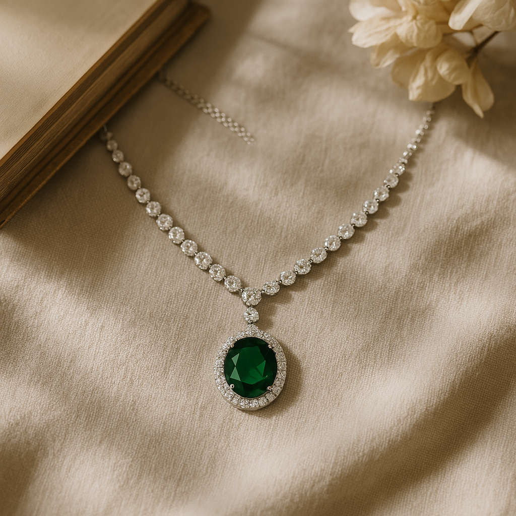 Expertly crafted for modern women who love classic charm, this set features a dazzling oval-shaped pendant encrusted with high-quality crystals, paired with matching earrings that enhance your look with effortless grace.