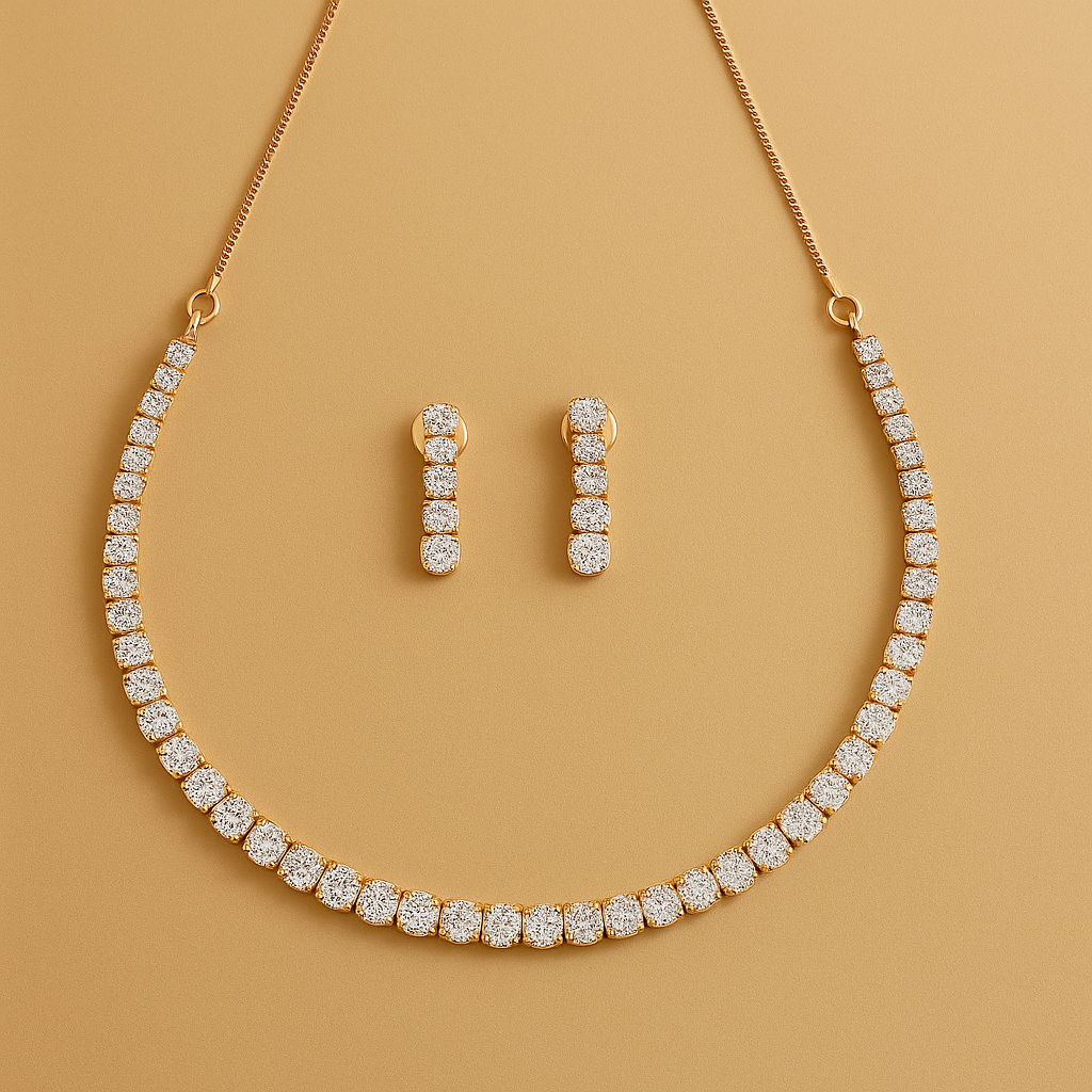 Whether it's a wedding, party, festive occasion, or everyday wear, this classic solitaire design adds a touch of sophistication and charm to any outfit. Ideal for gifting or personal styling, this jewelry set seamlessly blends traditional craftsmanship with modern finesse.